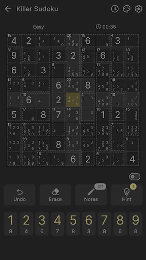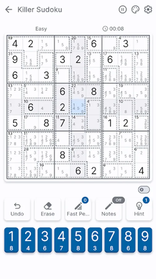Killer Sudoku is great for both beginners and advanced players. Although Killer Sudoku is harder than classic sudoku, we made it accessible for players of all skill levels. With its enhanced gameplay, it's easy to follow the game rules and become a sudoku master in no time.
