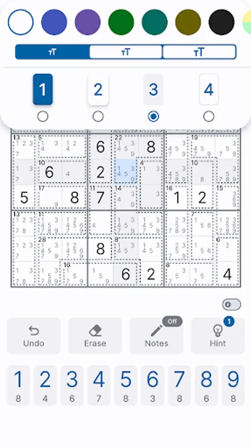 ✓ Color themes. Choose one of four appearances to design your own Killer Sudoku kingdom! Play these fun free number games with more comfort, even in the dark!