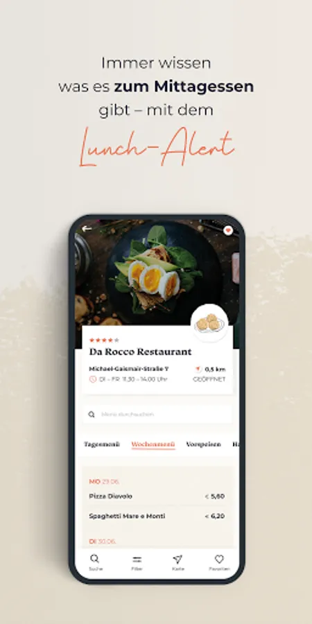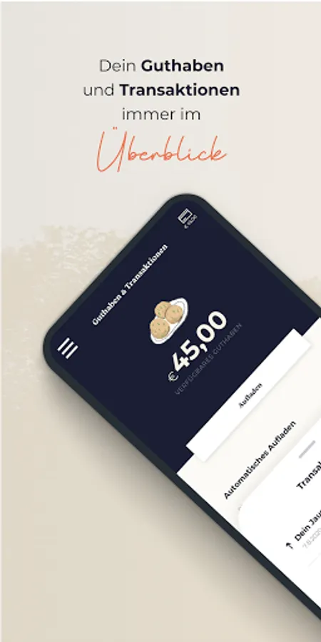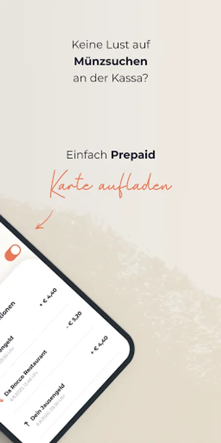 Use the lunch alert of your favorite restaurants to stay informed about the menu of the day at all times. Looking for coins at the cash register? Was yesterday! You can load the prepaid card with credit at any time via the app, or simply use the automatic top-up with credit.