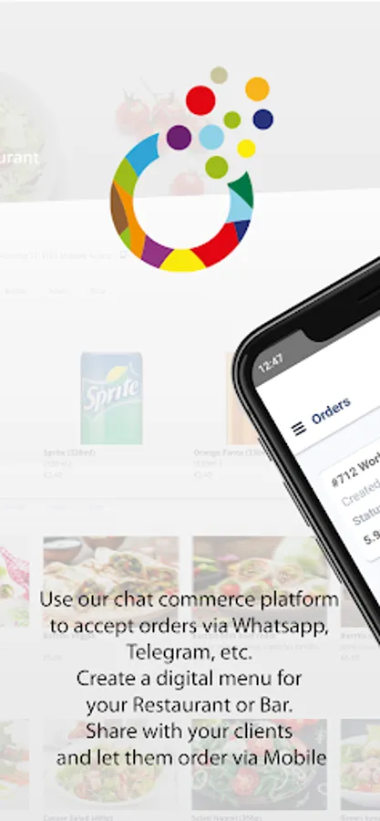 Use chat commerce platform to accept orders via Whatsapp, Telegram, etc. Create a digital menu for your Restaurant or Bar. Share with your clients and let them order via Mobile