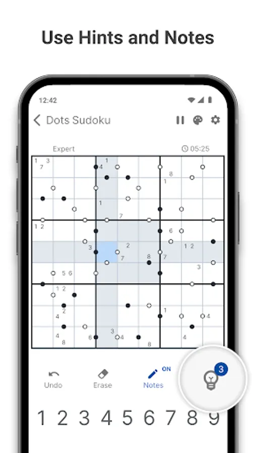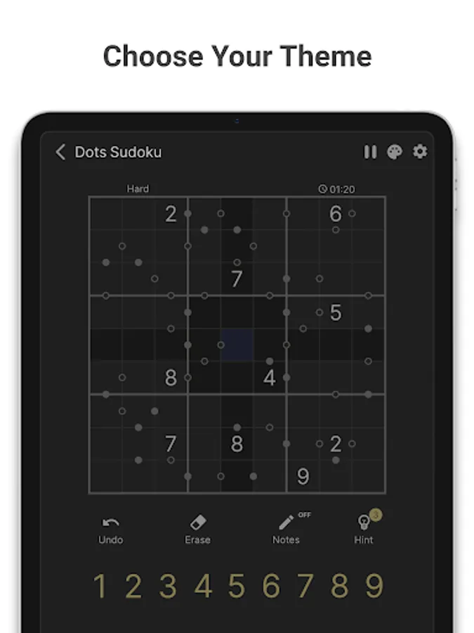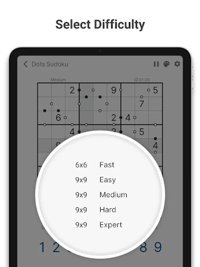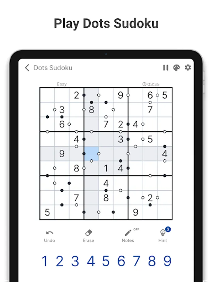 Kropki Sudoku is perfect for both sudoku beginners and pro sudoku players! You can choose a difficulty level that fits your goal best β an easy puzzle to relax and clear your mind or an expert level for a real mental workout.
