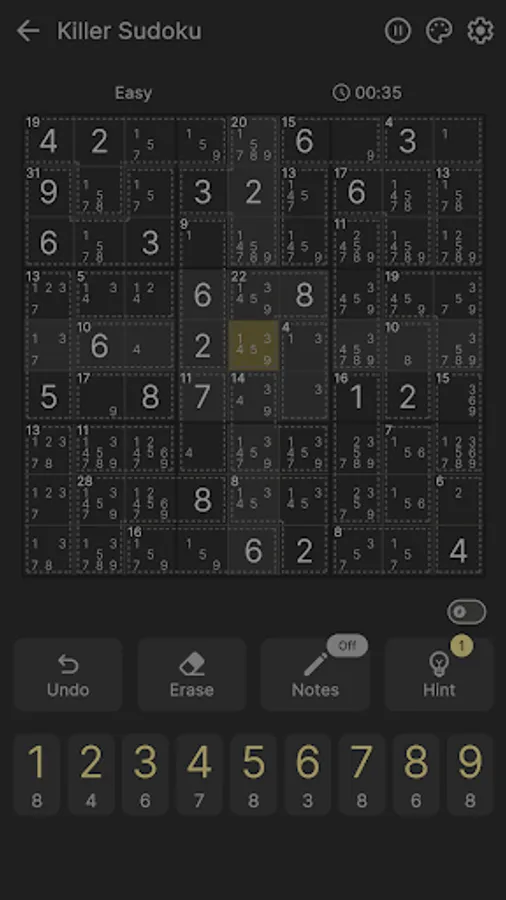 β’ Turn on Notes β to make notes as on paper. Each time you fill in a cell, notes are automatically updated!