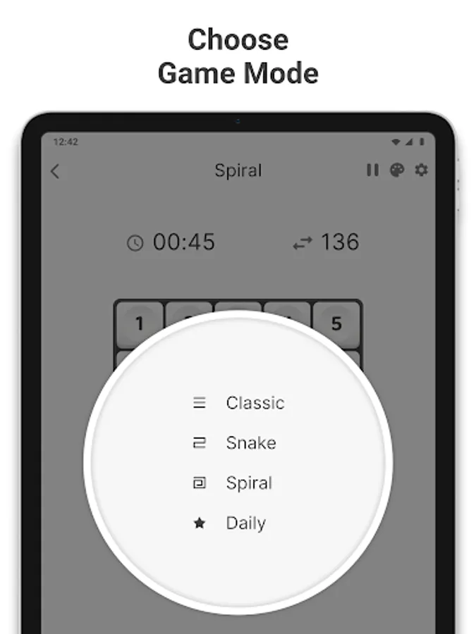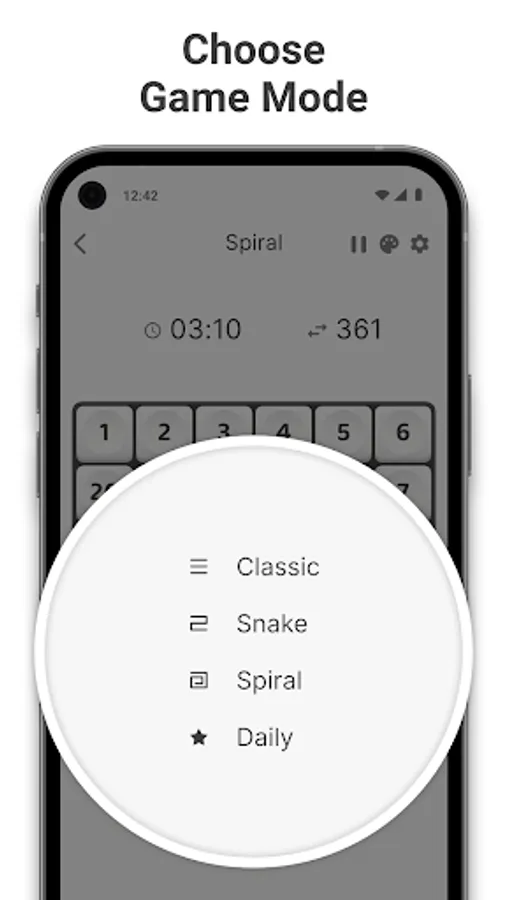 • 3 game types for you: "Classic", "Snake" and "Spiral"