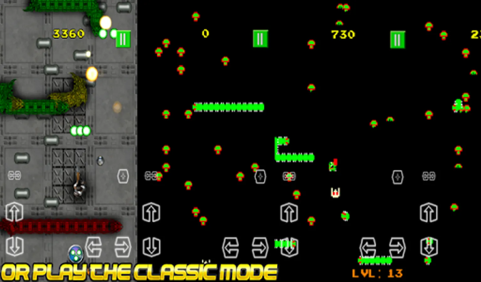 Defend the space base of terrible mechanical centipedes by firing at their segmented bodies.