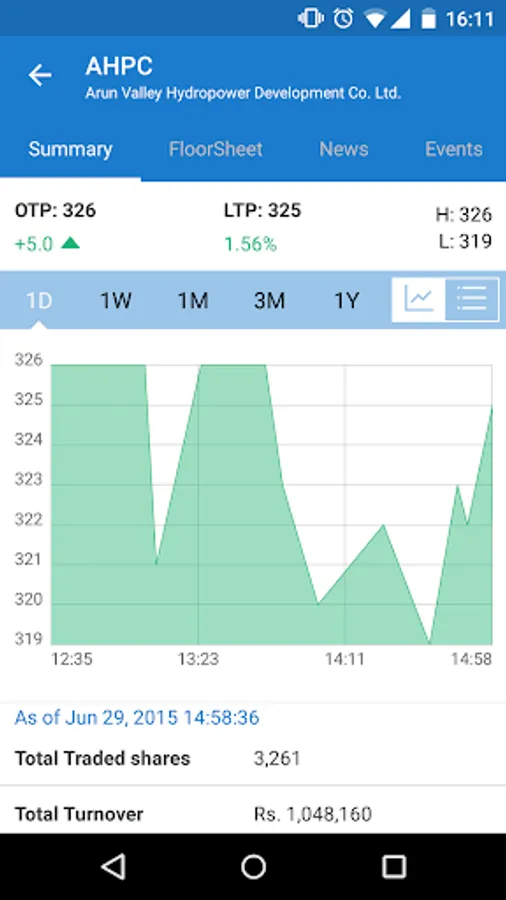 - Summary section shows the graphical movement of Nepse for different sectors where users can choose from time variations starting from a single day to a year