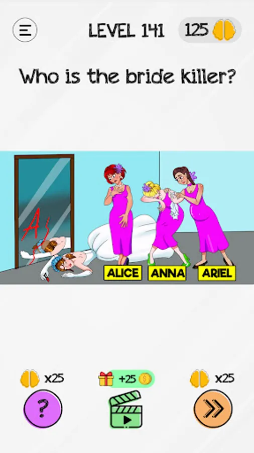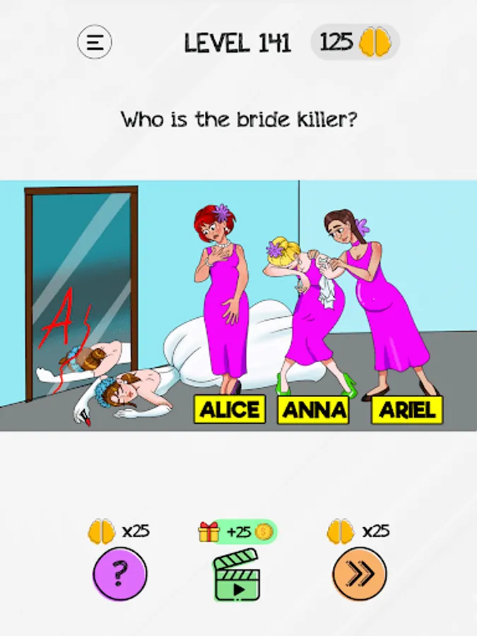 In the levels of Braindom’s brain test tricky puzzles, brain teasers will line up on your way: mystery solving, who is lying, who did it, who is telling the truth, who’s the killer, who’s the vampire, who’s the father, who is the mother.