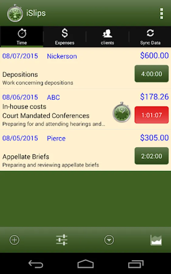 Are you a Timeslips user who needs a fast and simple way to track your time and expenses on your Android device? Then iSlips® is the solution for you. iSlips is a stand-alone Android application that allows you to take your key Timeslips data with you while on the go.