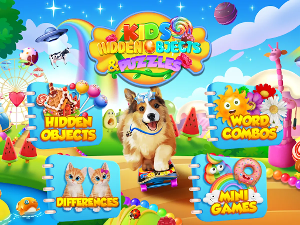 Game has Hidden Object Puzzles, Memory Matching, Combo Words and Same Sounds, and Exciting Mini Games! Engaging and Educational Learning App!
