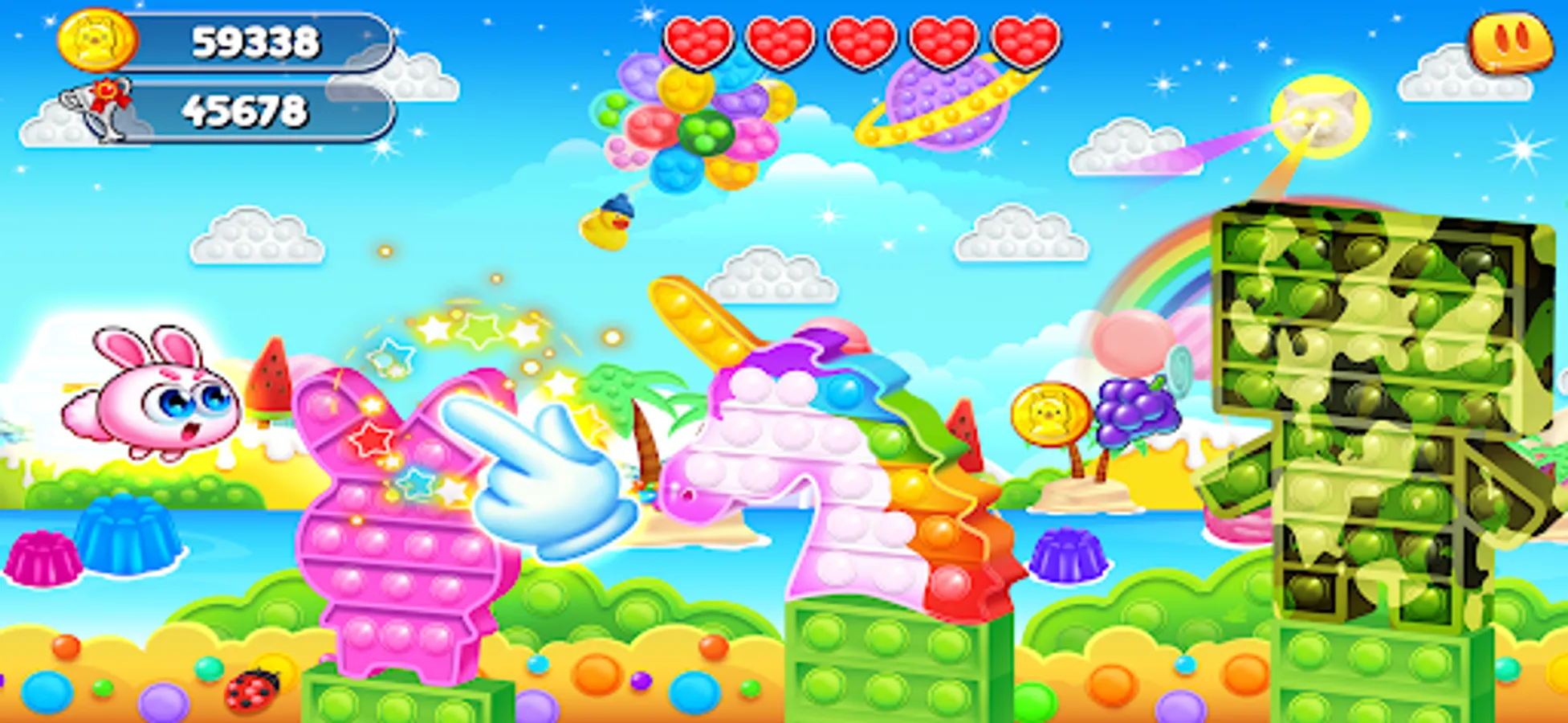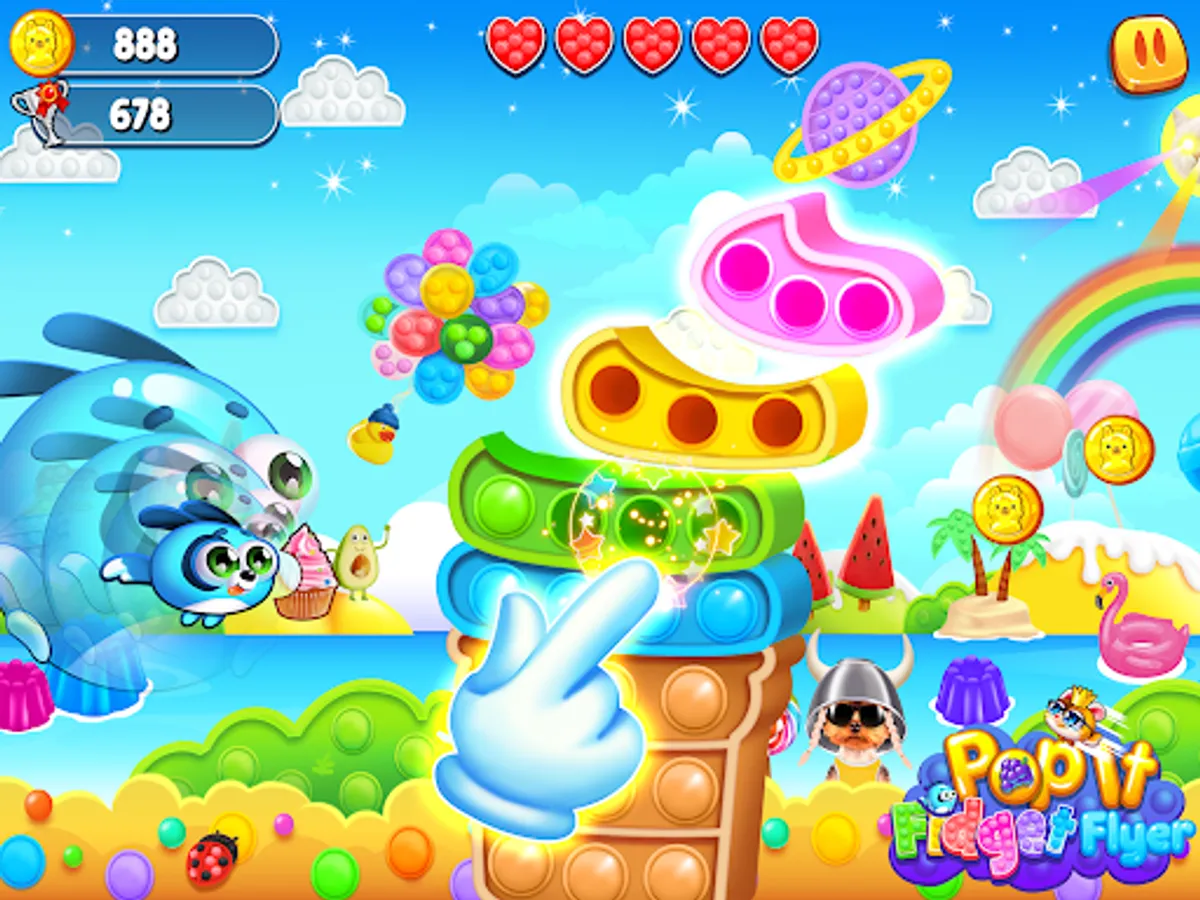 Avoid Cupcakes – these are Inflatable Edibles! Your Pet Inflates once a Cupcake is Eaten, which challenges you to Pop Faster before reaching a Fidget Toy tower. Your Pet is Balloon-Sized now and you must really move quickly to Pop down the toy!