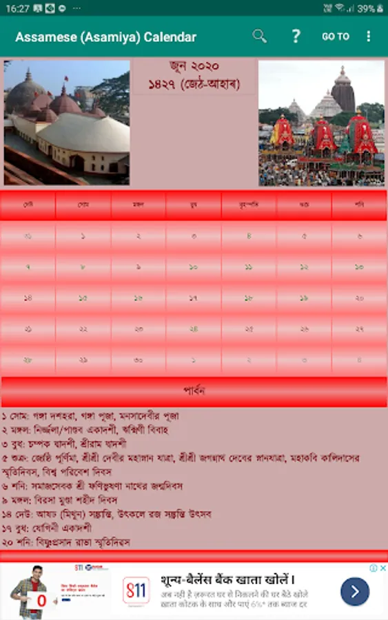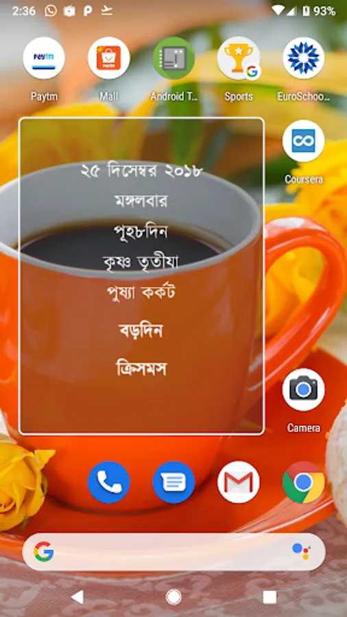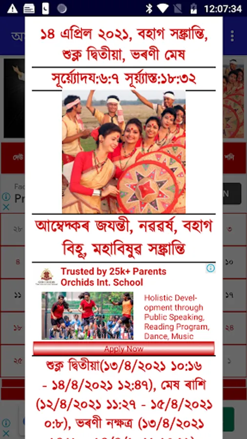 The application also creates a home screen widget displaying today’s information in Asamiya (Assamese).