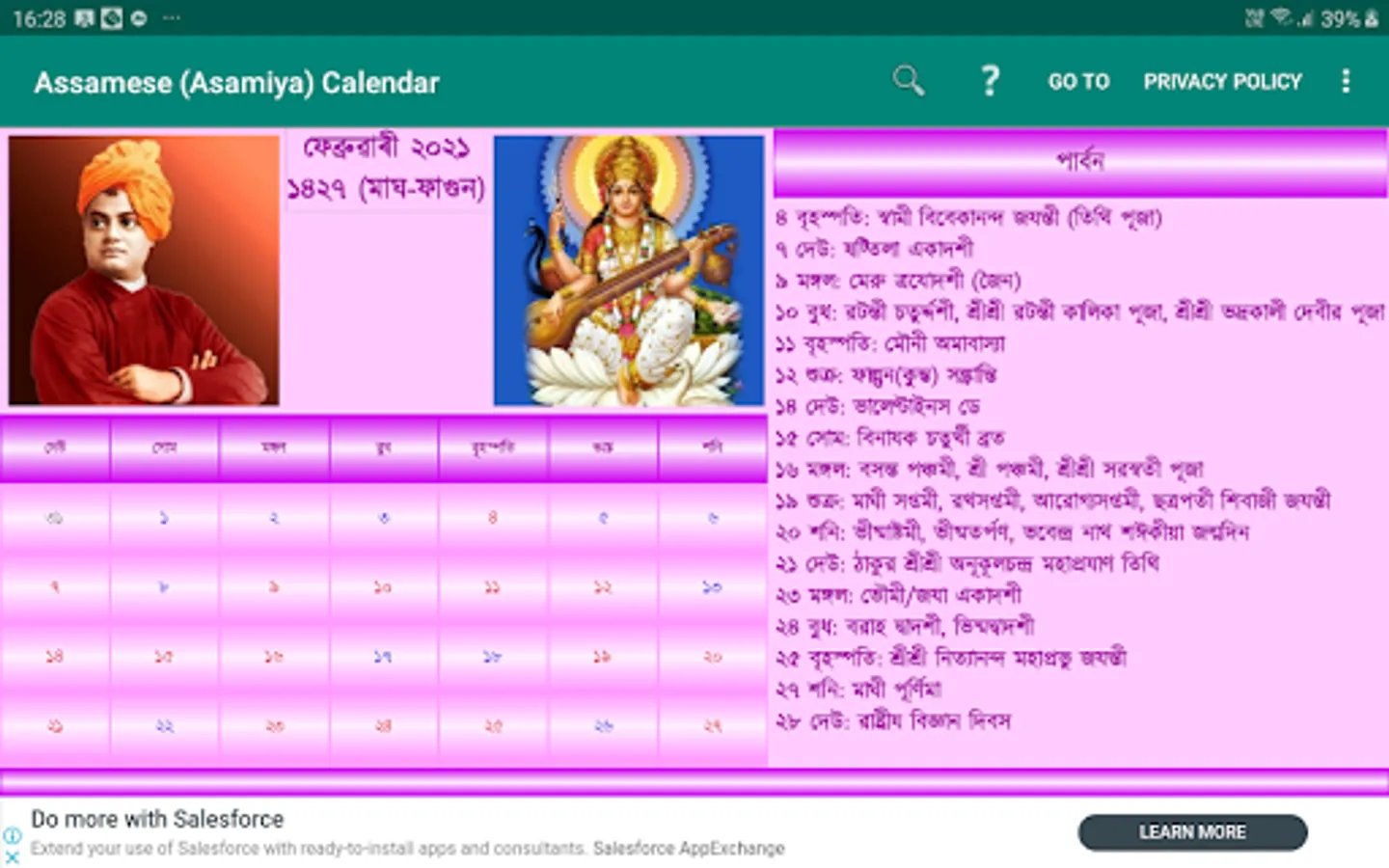 This is a calendar application useful for all the the Asamiya people. It shows all festivals important for Assamese people as well as important Indian festivals for 150 years starting 1940, including the calendar for the year 2023.