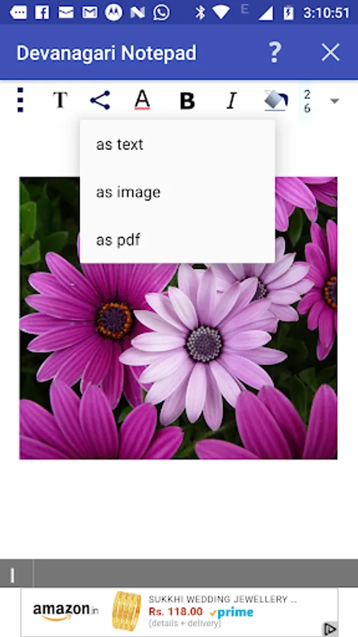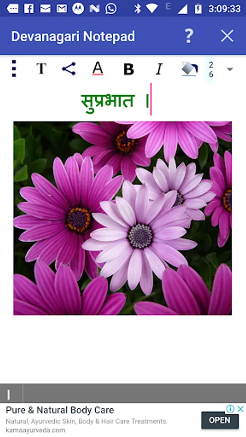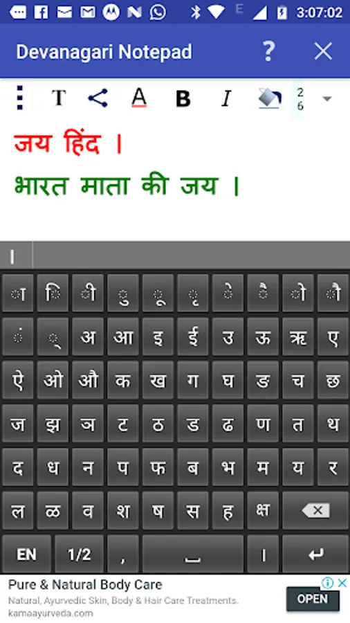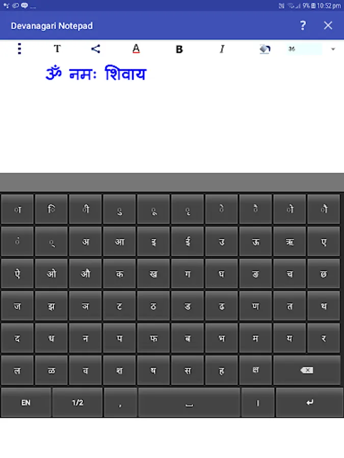 You can write, save, share and send Hindi, Marathi, Nepali and Sanskrit texts using Devanagari Notepad.