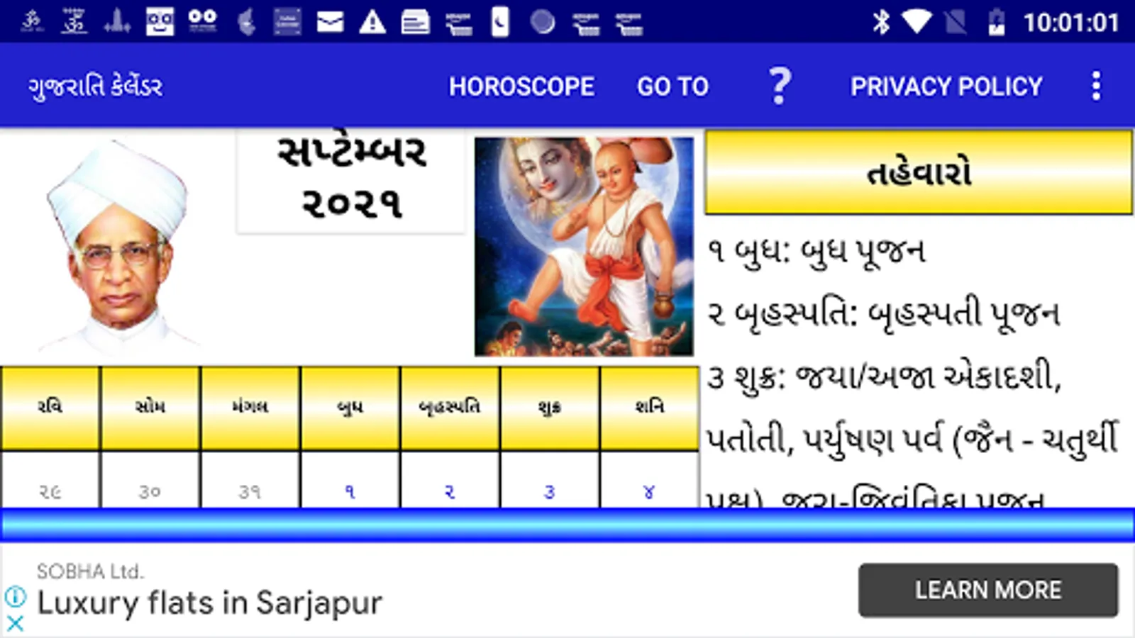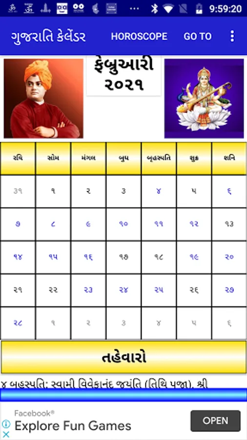 The most important feature of this calendar application is that this is completely in Gujarati language.