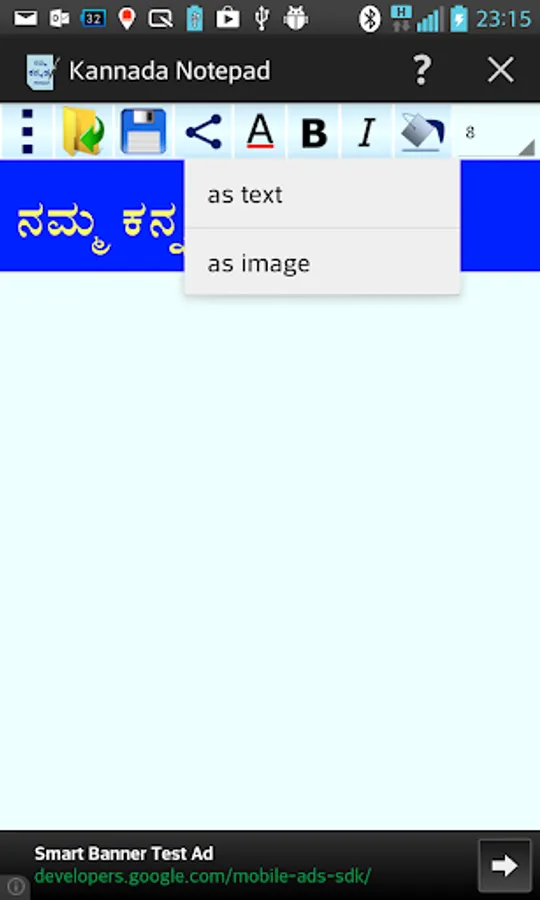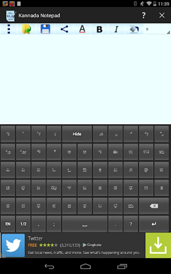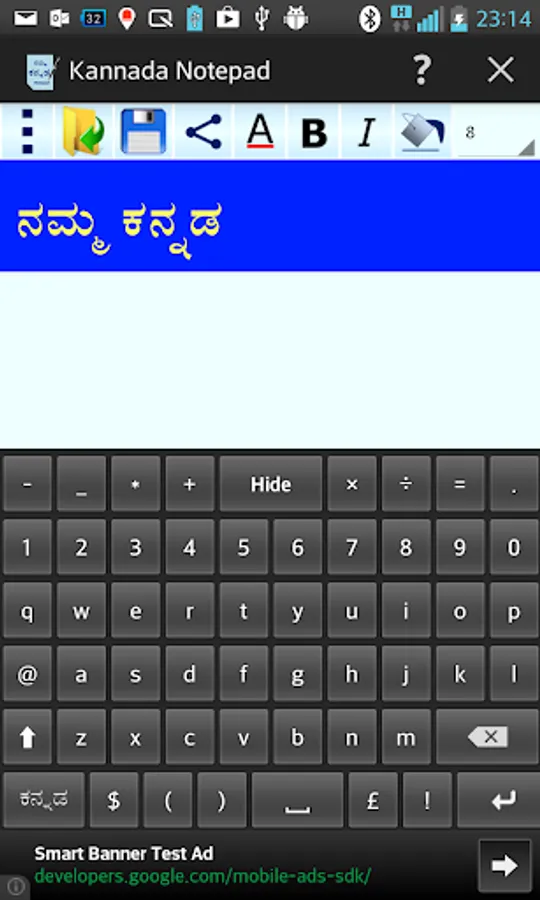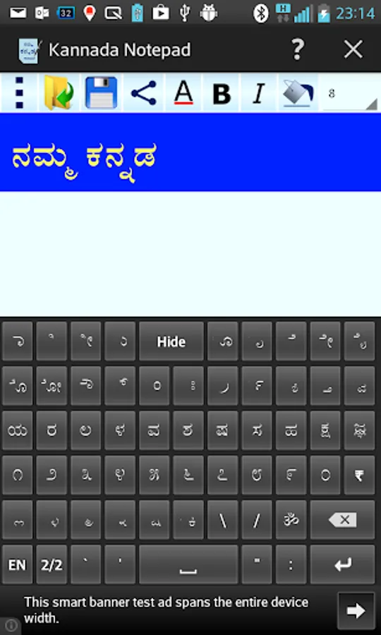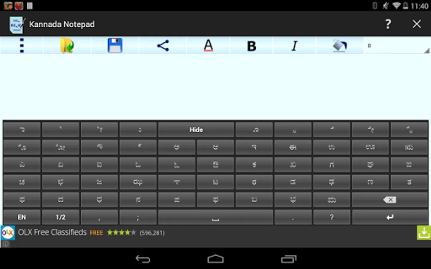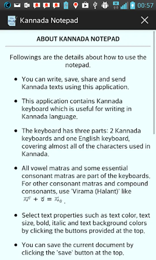You can write, save, share and send Kannada texts using Kannada Notepad.