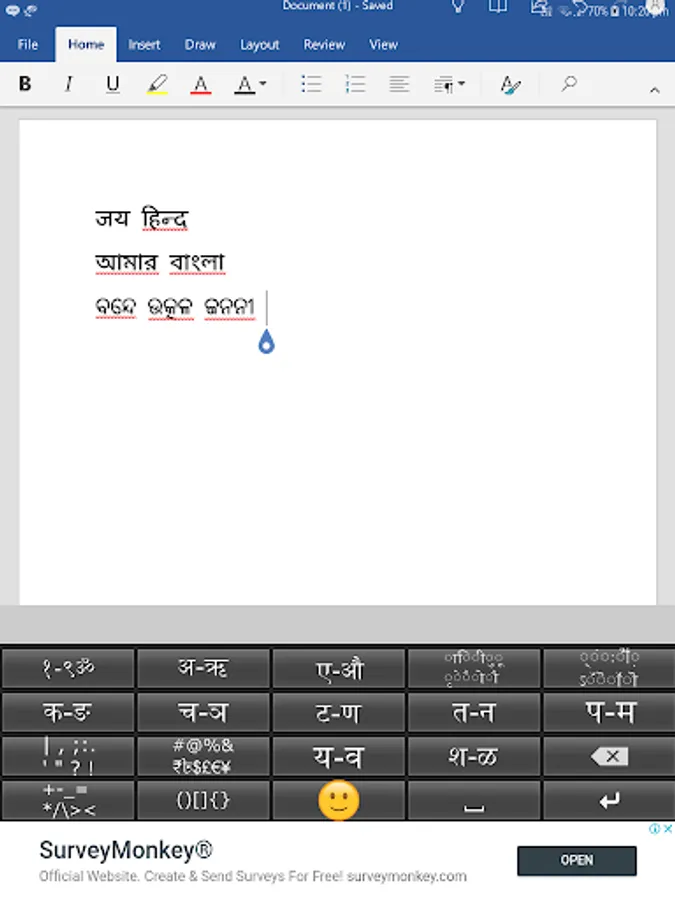 If you press a key multiple time, different characters will be typed. The character range for each key is mentioned on each key. Separate keys are there for Matras, essential symbols, punctuations etc. Complex letters (Sanyuktaksharas or Yuktaksharas) can be created with the help of ‘Halant’.