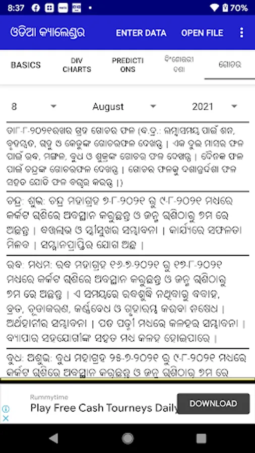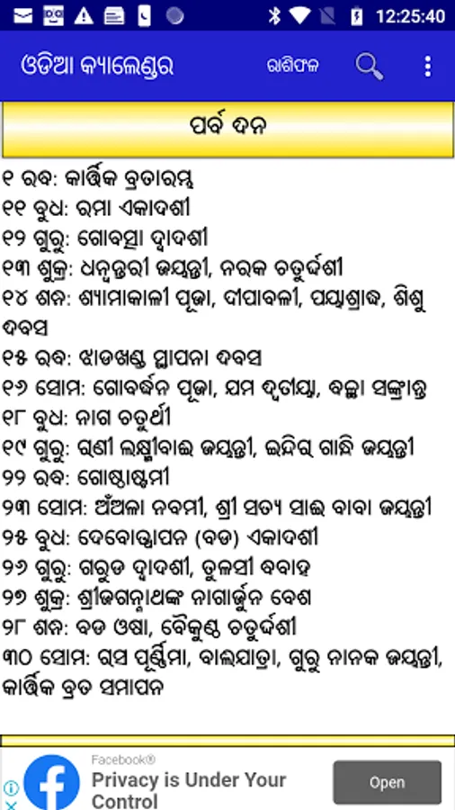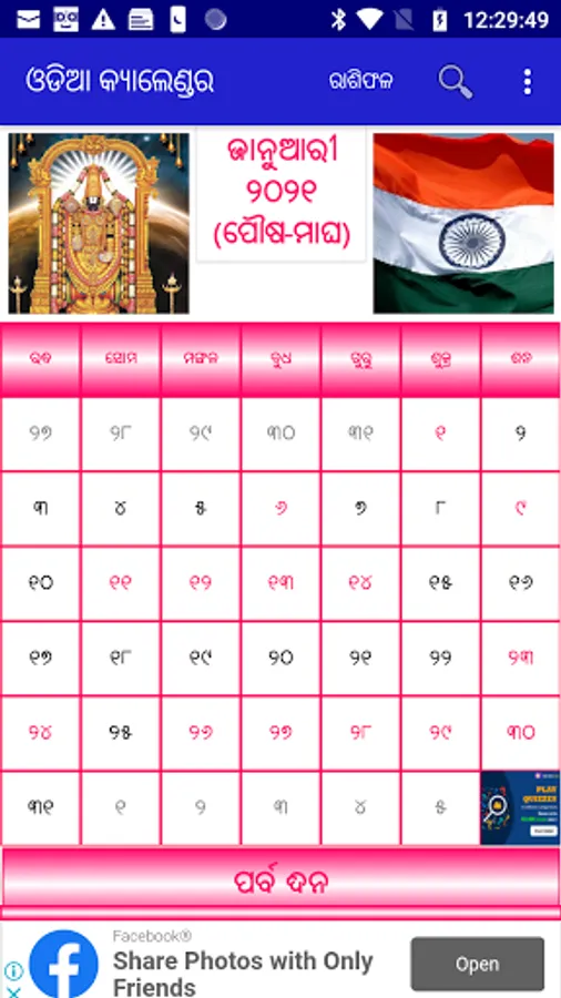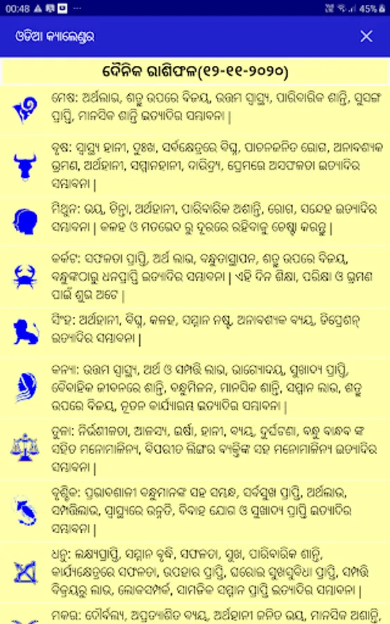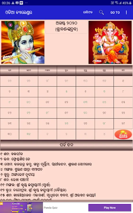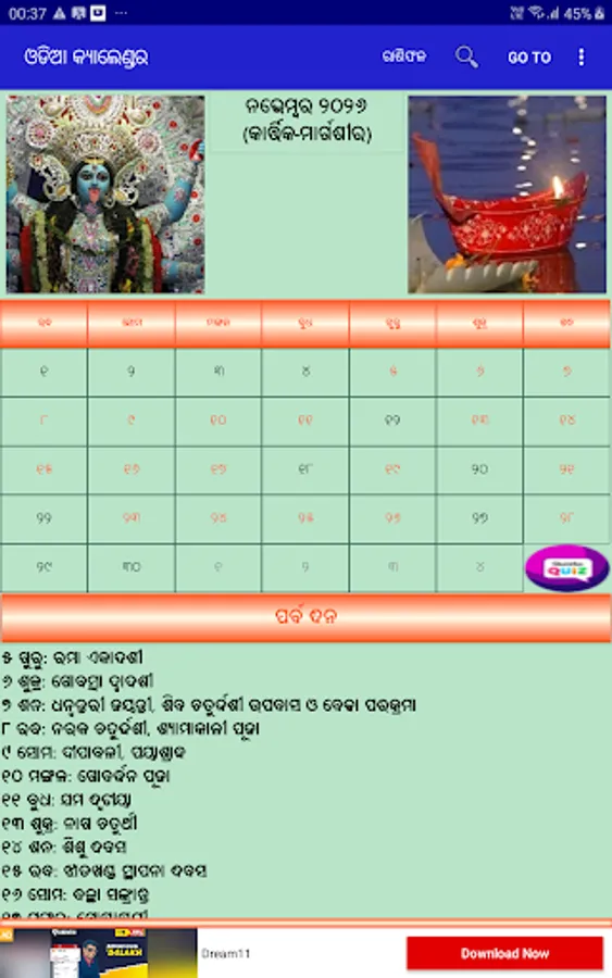 The most important feature of this calendar application is that this is completely in Odia (Oriya) language.