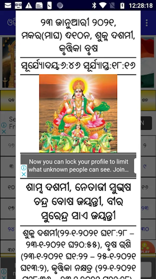 The application also creates a home screen widget displaying today’s information in Oriya (Odia).