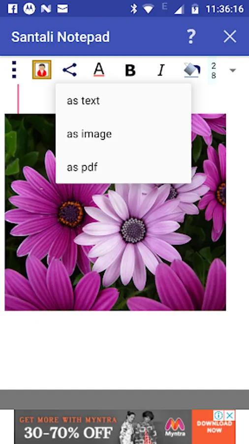 Options for sending and sharing the Santali Text Content as image is provided here.