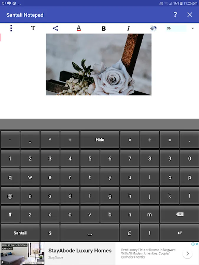 You can write, save, share and send Ol Chiki (Ol Cemet’) texts using Santali Notepad.