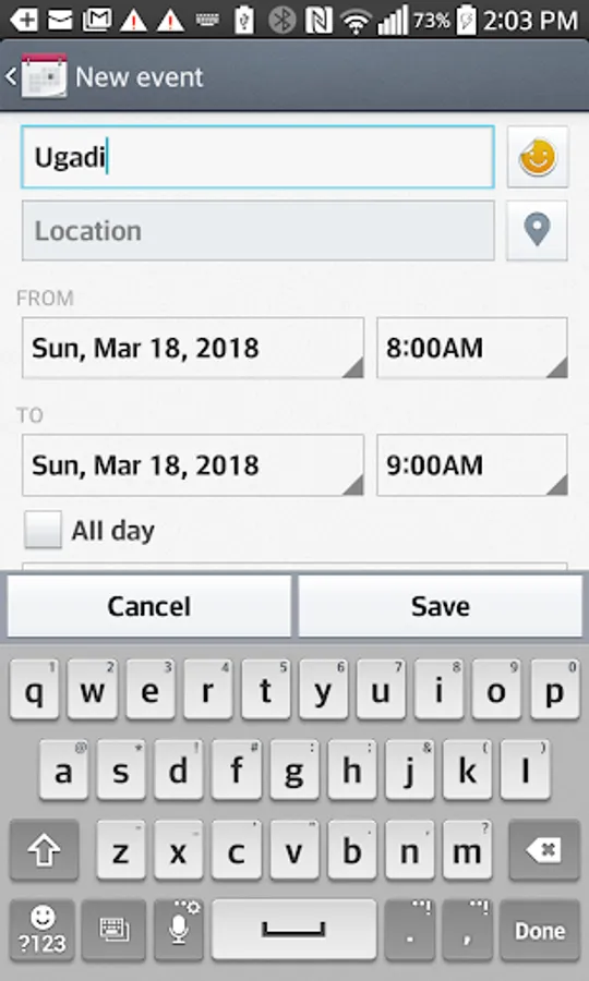 One can add reminder for a special day by long pressing on a special day on the calendar.