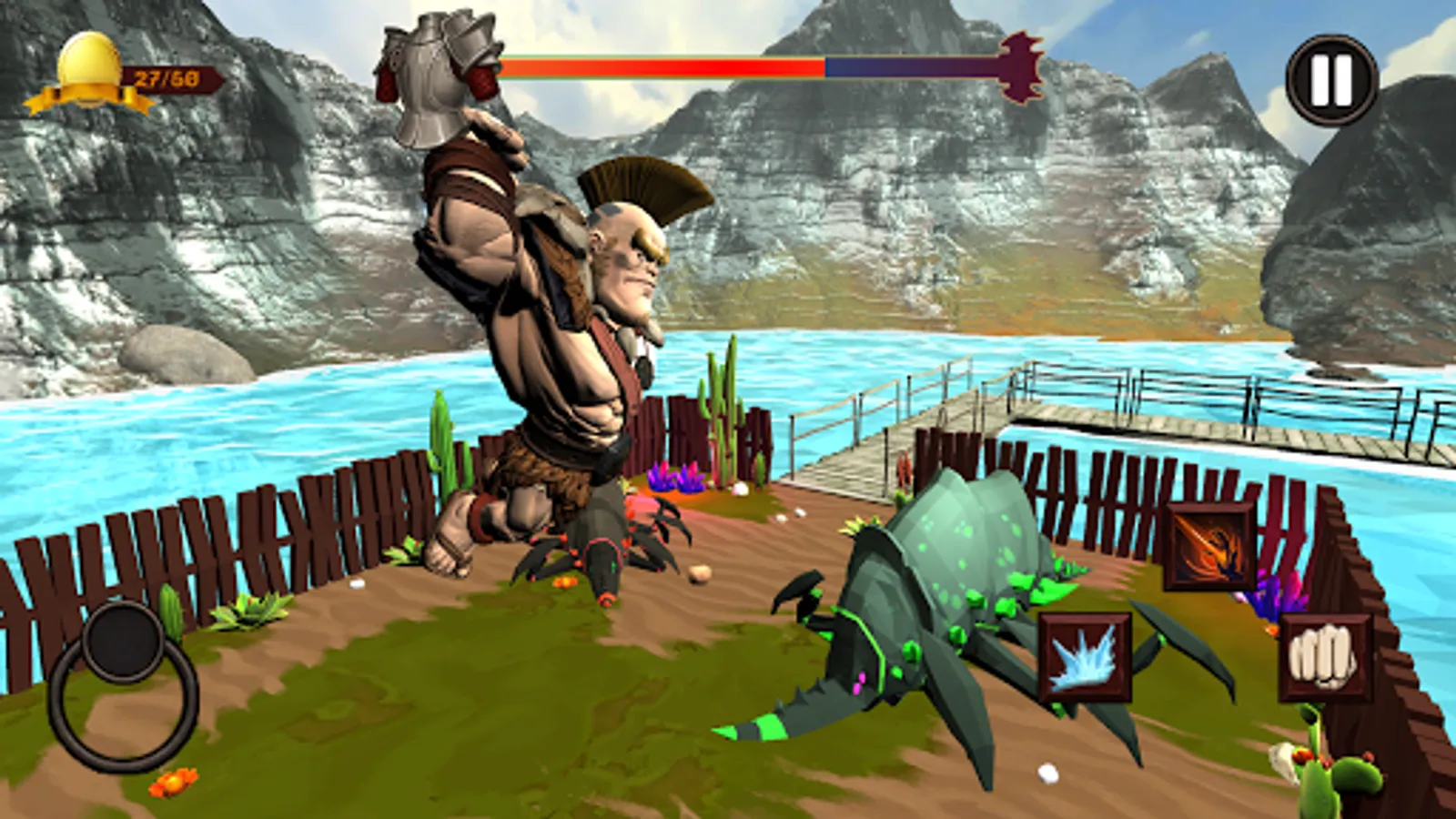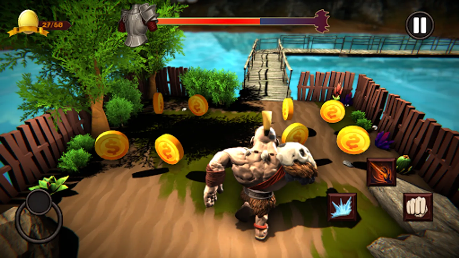 - Collect coins by fighting against spider monsters and fire monsters by your ultimate angry Viking's powers of punch, jump and ice spear attack.