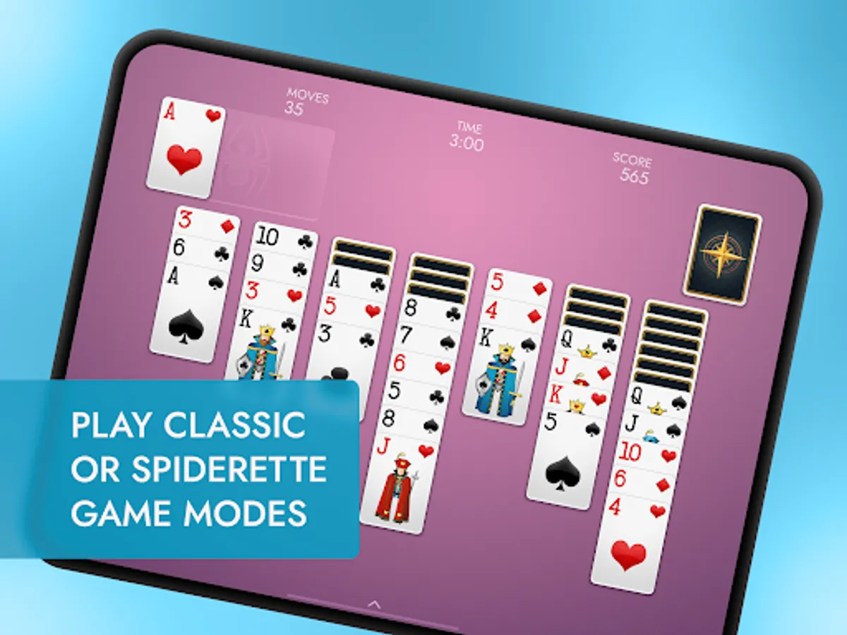 Spider Solitaire pairs the relaxing gameplay you love with clean design and a fresh, modern look. Experience all the fun and challenge of Spider, including multiple suits and Spiderette mode.