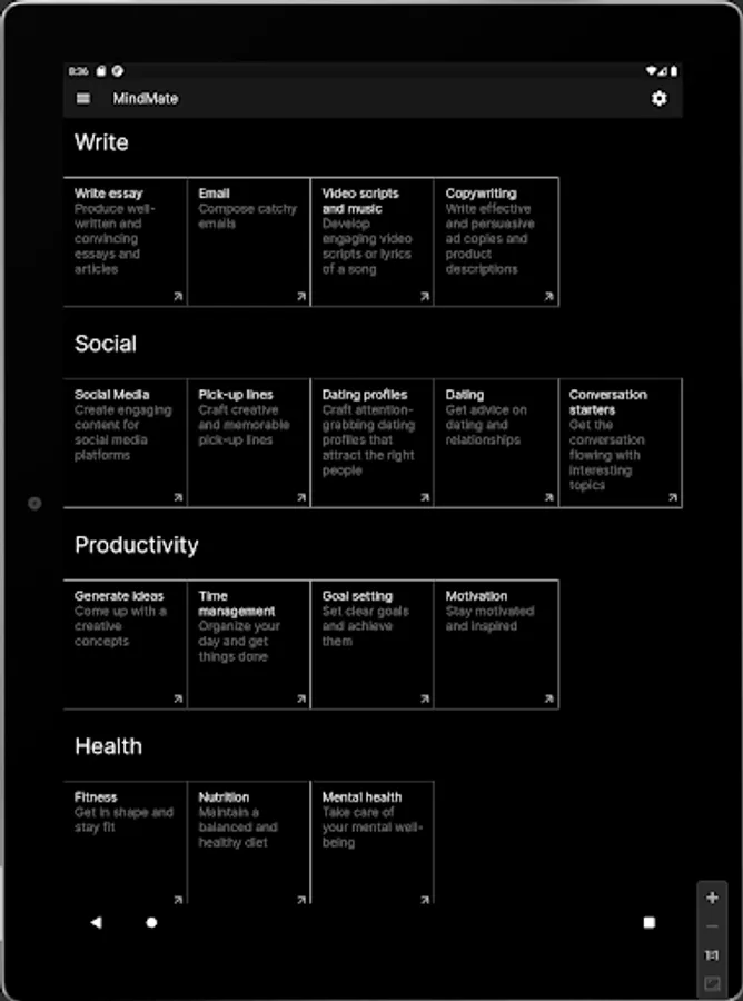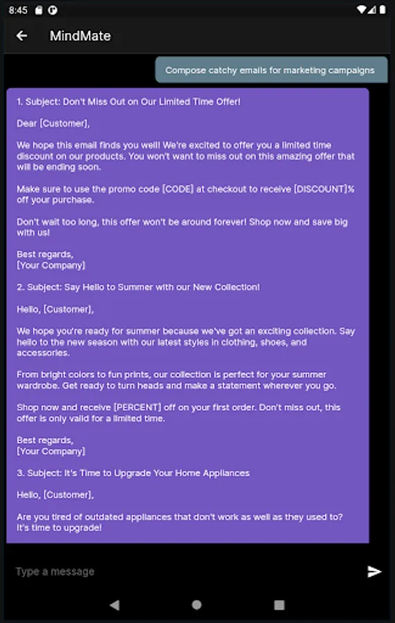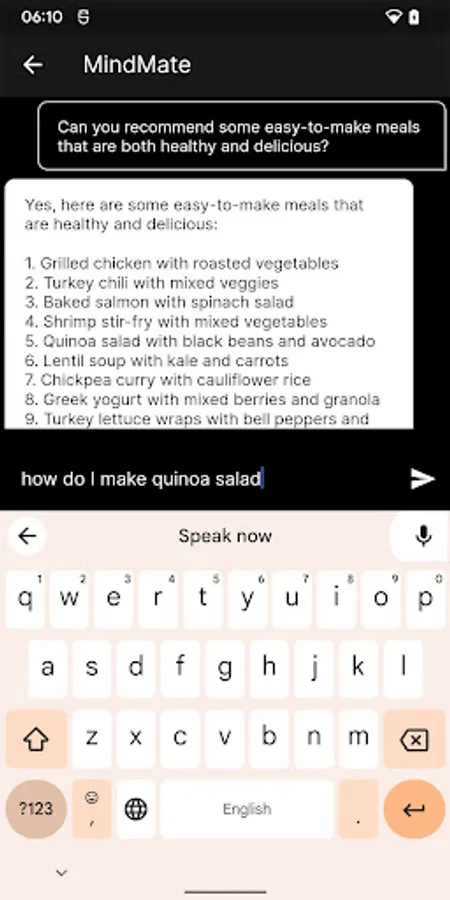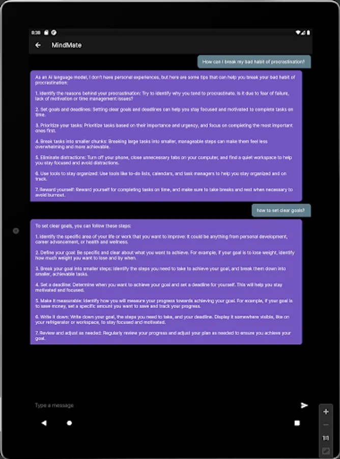 Enjoy a clean and intuitive user interface that makes conversing with MindMate a breeze.