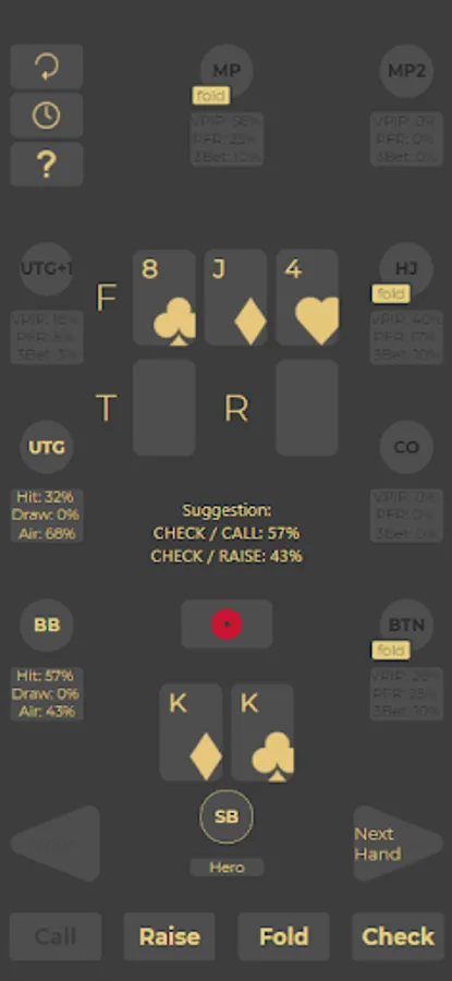 Let PokerHack know your cards, and opponents action, she will come up with the GTO suggestion. Everyone can easy to follow the GTO strategy, and turn into a top 20% poker players.