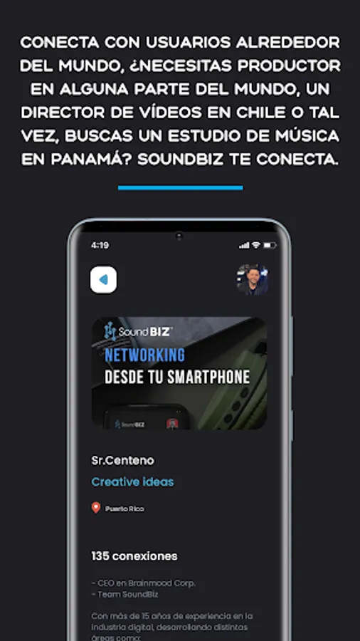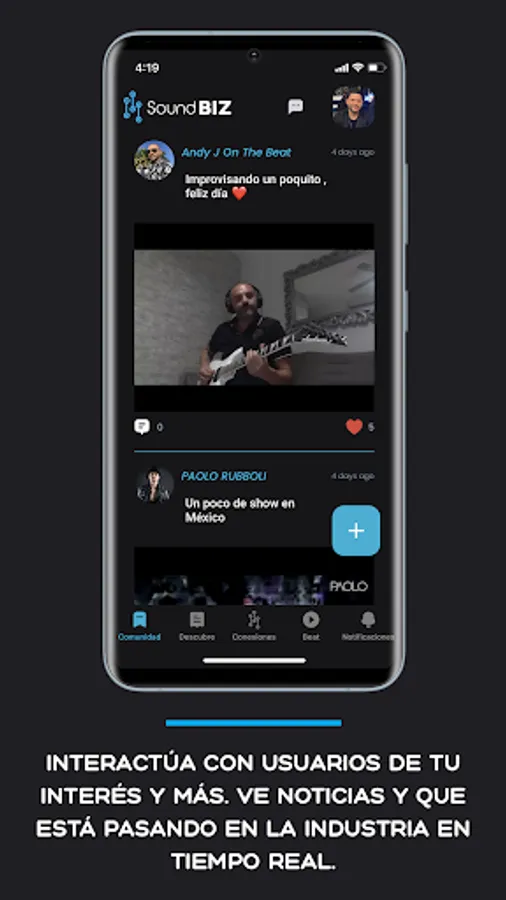 SoundBIZ is a tool dedicated to the world of entertainment where you can exchange, discover and connect to create or share your talent directly and without intermediaries.