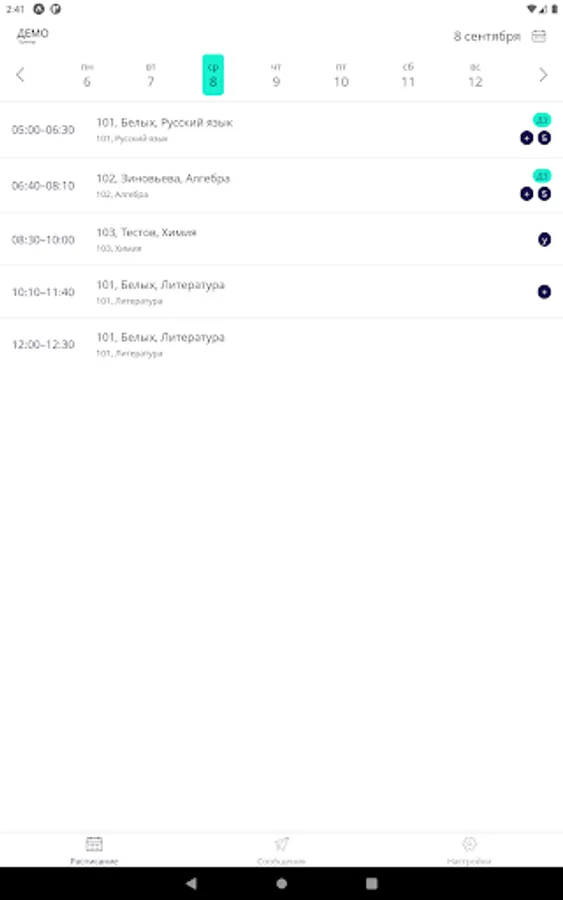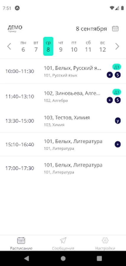 Autorepeat lessons, various options for viewing the schedule, flexible settings, upload to a file. Auto-generation of the grade and attendance journal.