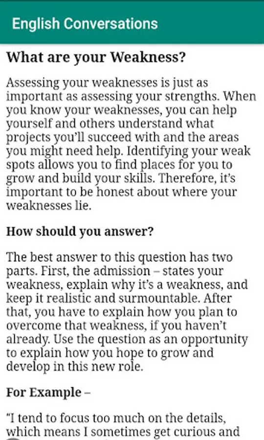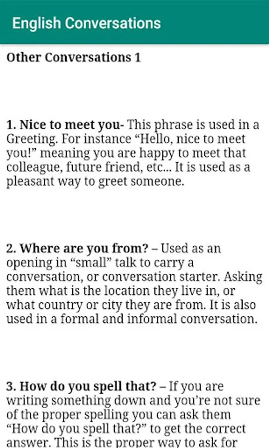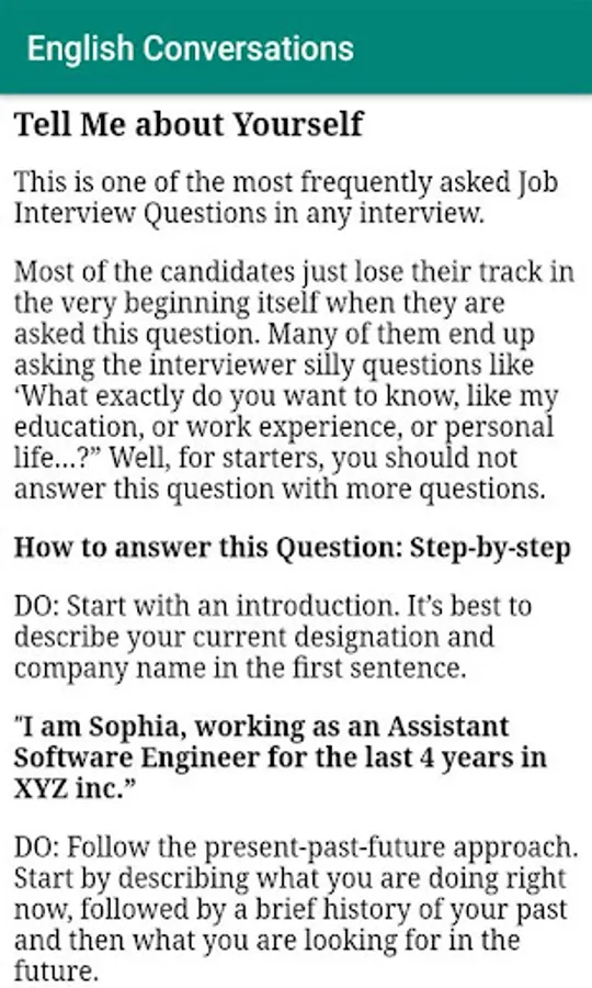 If you follow the described tips, you will easily learn English Conversation. I think that this android application is robust tool to learn English Conversation very fast and speak fluently English.