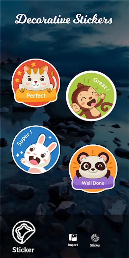 Import images: add your own images from gallery. This could come in handy when you have your own stickers, or you want to composite two images...