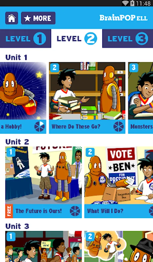 Full Access: Includes all 90 BrainPOP ELL lessons, including beginner, intermediate, and advanced.