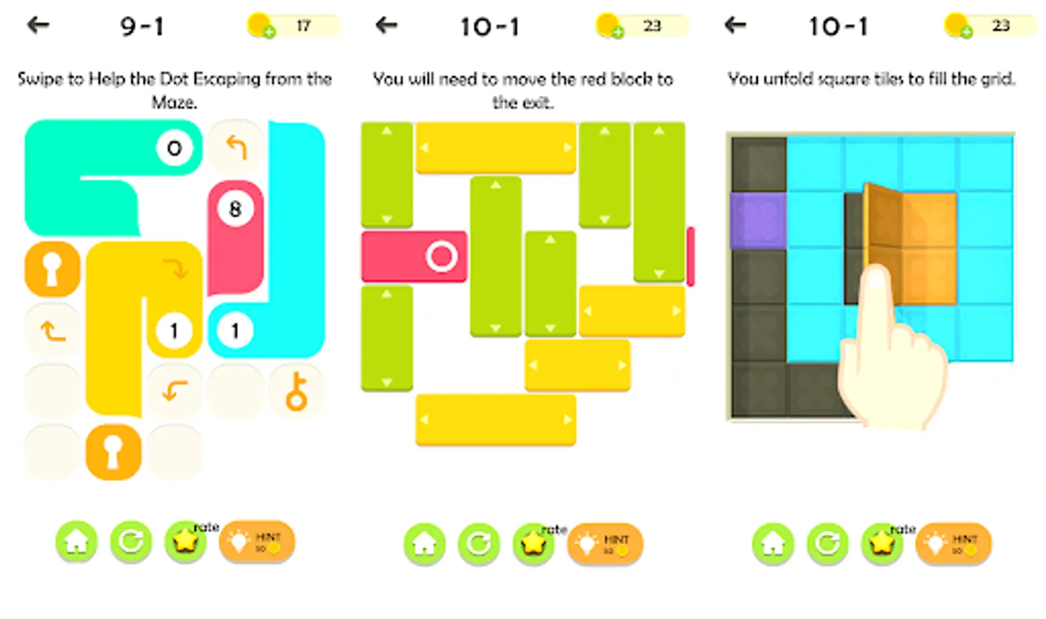 ◉ FOLDING BLOCKS: You unfold square tiles to fill the grid.