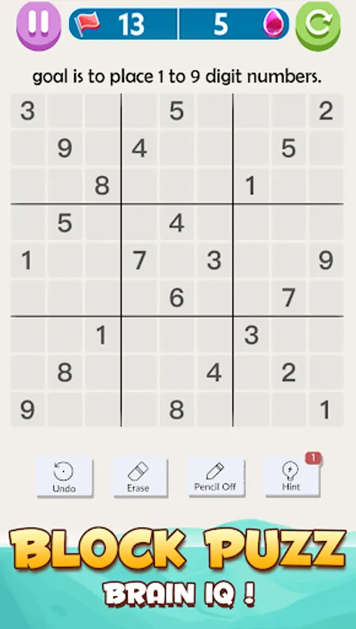 ◉ SUDOKU: Number puzzle game and the goal is to place 1 to 9 digit numbers.