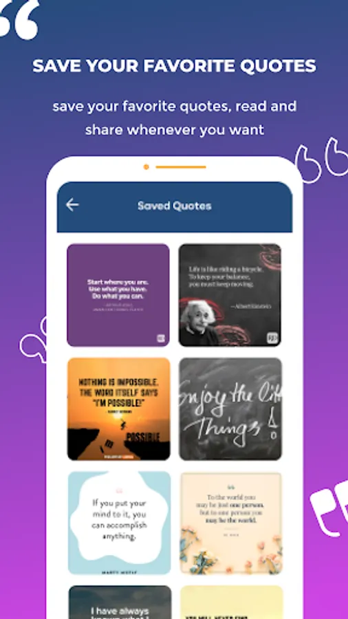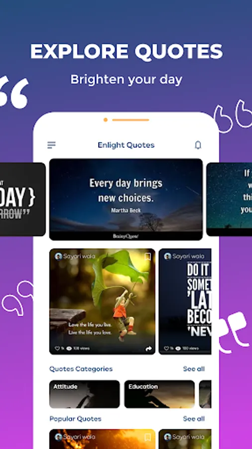 Enlight Quotes is a unique Quote app where you can get your dose of daily inspirational and motivational quotes, and you can also upload your own Quotes to inspire others.