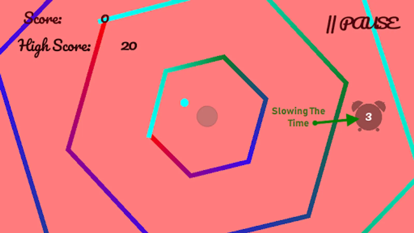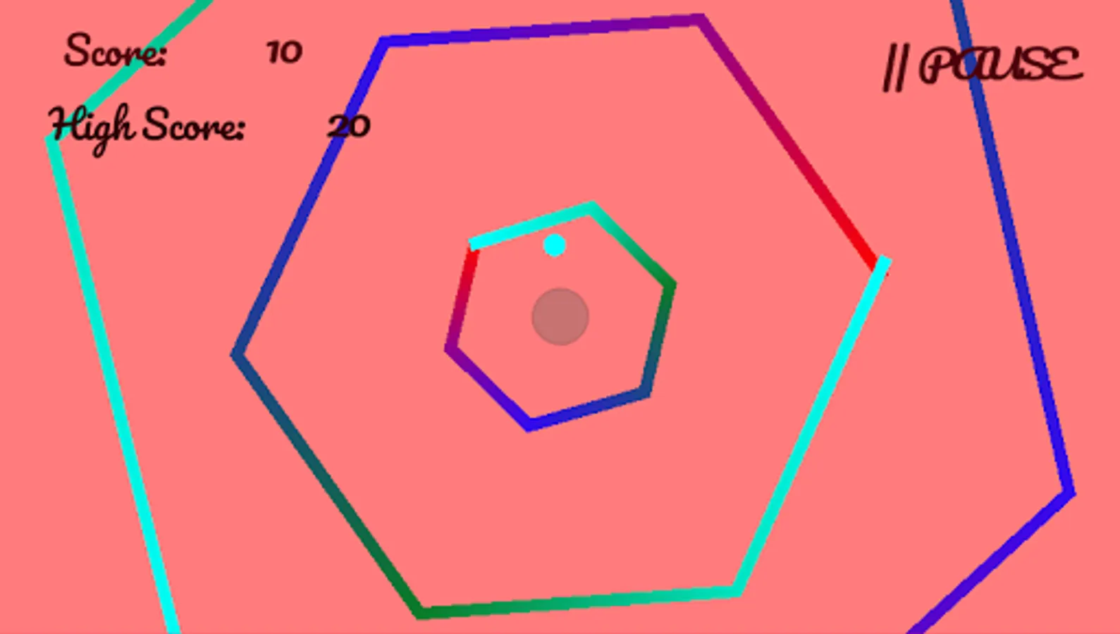 The gool of this game is to Follow the same color on the hexagon and reach the highest Score.