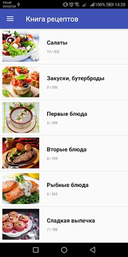The application remembers where you left off for each category. Thanks to this, you can later resume reading from the same place. You can also read recipes in random order (not by category).