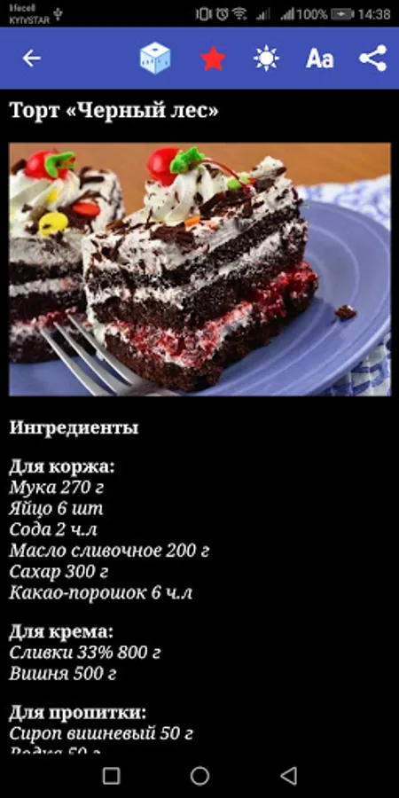 The application supports night mode and offline mode (without the Internet), there is a search. You can add your favorite recipes to your favorites, and you can also share with friends. Each recipe is accompanied by illustrations with an Internet connection.