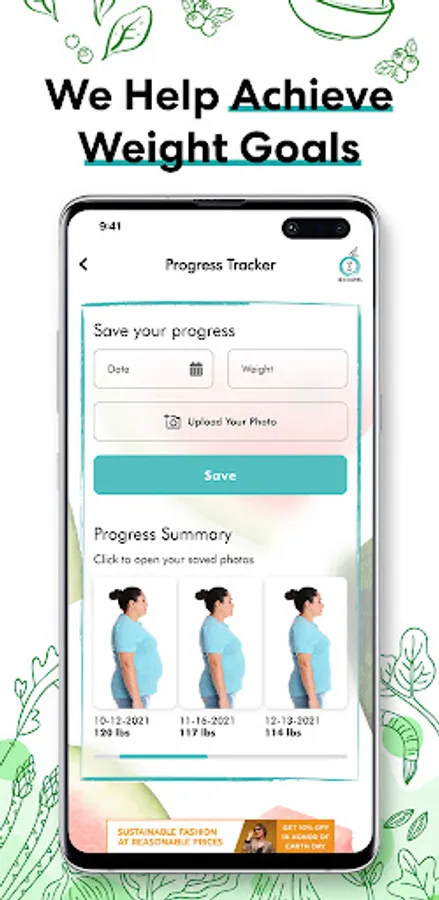 -PROGRESS TRACKER: You are able to save your photos and weight and compare your progress.