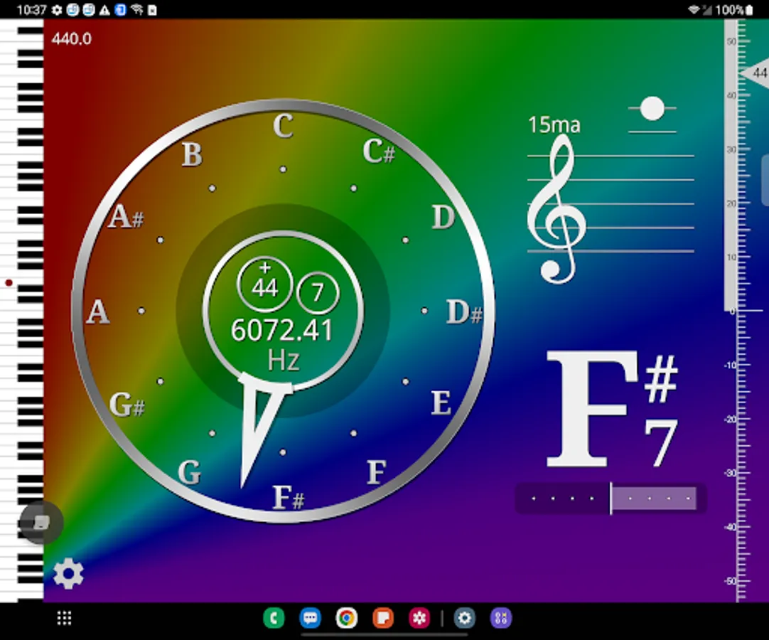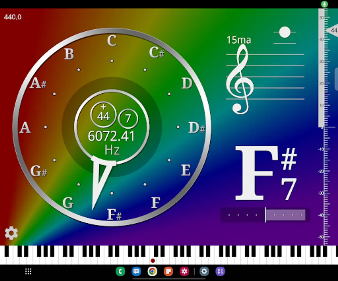 This is a chromatic tuner that captures the sound coming into the microphone, analyzes it, and displays the pitch. It shows the frequency and octave of the analyzed pitch, and the difference (cent value) from the standard pitch at the same time, allowing you to know the current pitch more specifically and quickly. In addition, graphical interfaces such as analog clocks provide more intuitive and multi-dimensional information.