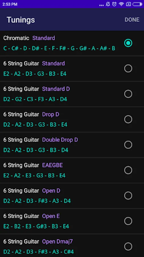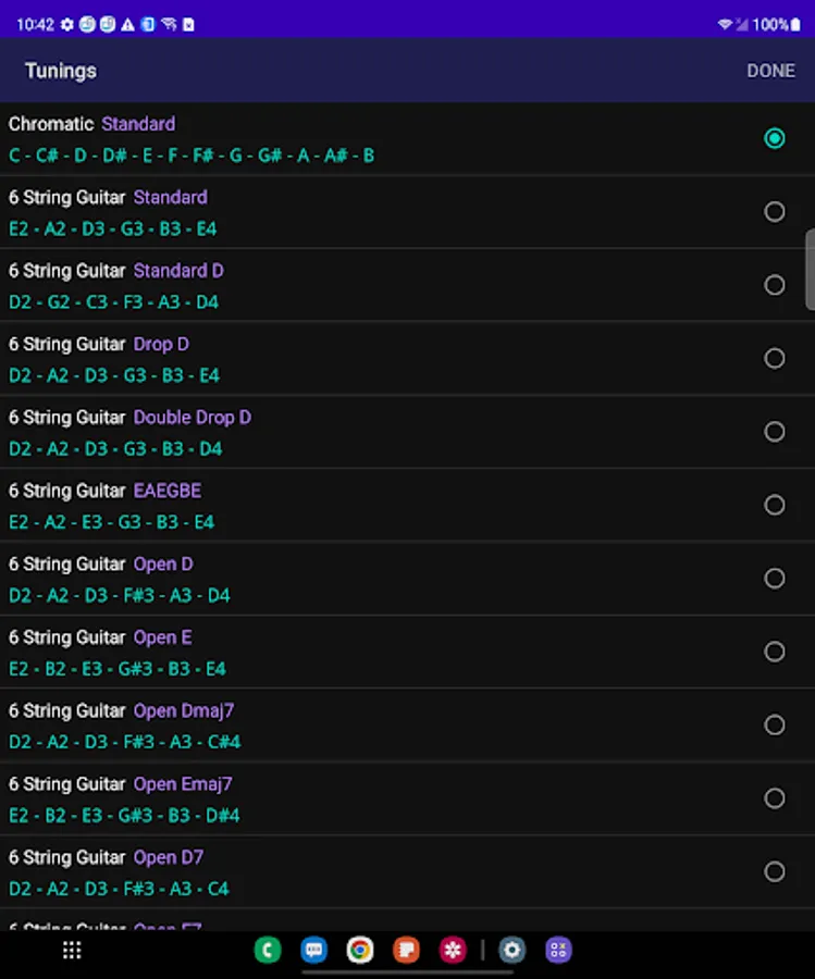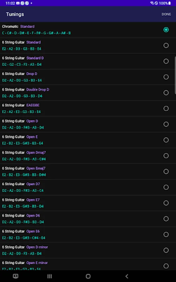 ● Tunings: Provides various instruments and custom tuning interfaces.