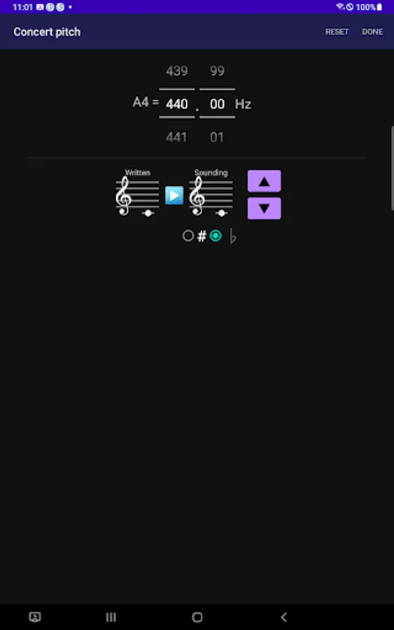 ● Transposition, concert pitch : You can change the most well-known tuning standard A4=440Hz. It also provides a transposition function for transposing instruments such as the clarinet, trumpet and saxophone.