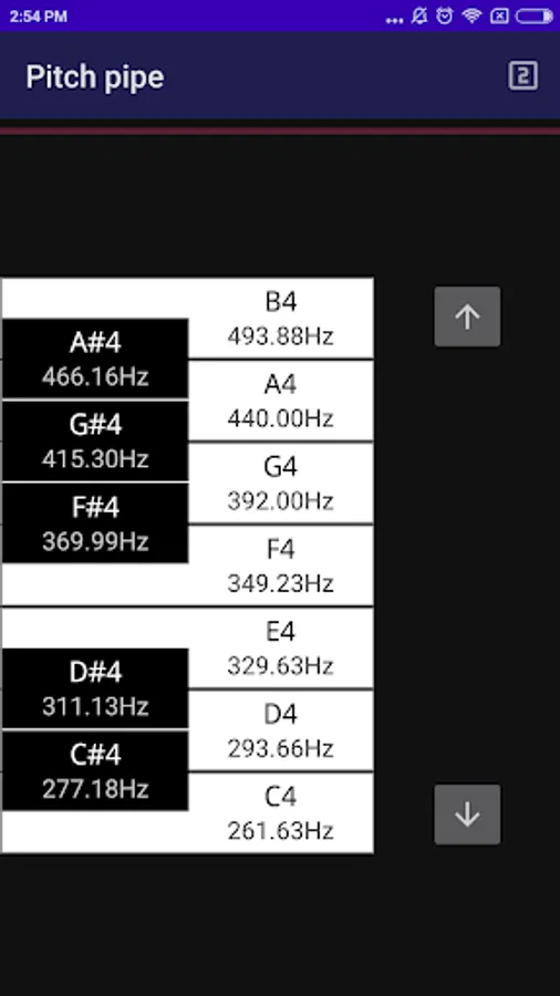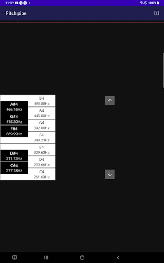 ● Pitch pipe : Produces a mathematically accurately calculated frequency tone. Also, the piano keyboard interface and standard frequency values can help you understand sounds and music.