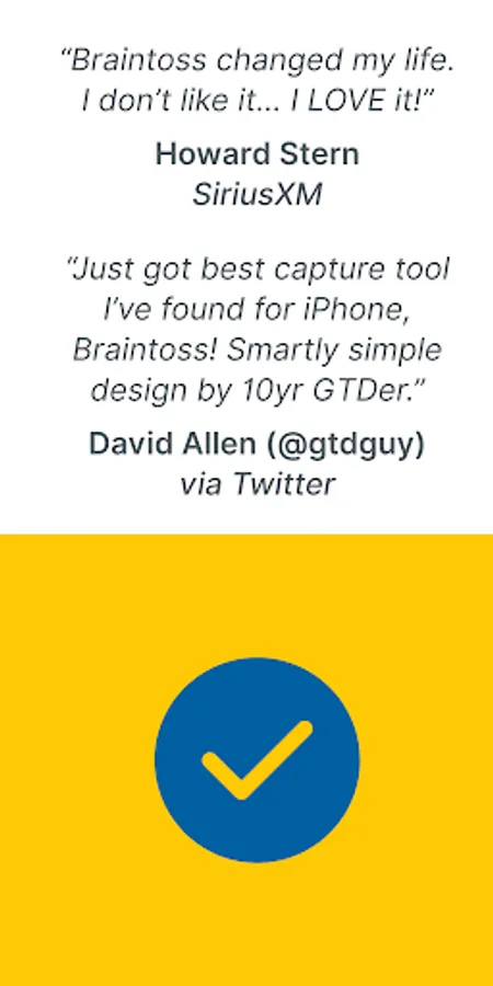 "Just got best capture tool I've found for iPhone: braintoss.com. Smartly simple design by 10yr GTDer." - Awesome praise from GTD guru David Allen via Twitter.