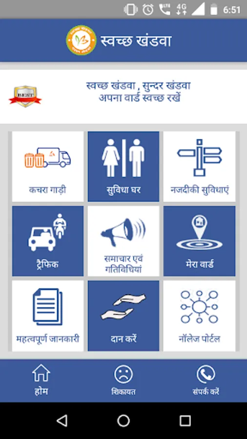 Swachh Khandwa app : Official App connecting Citizens of Khandwa with Nagar Nigam , it encourages citizens of Khandwa to be an Active member of "Swachhata Mission"