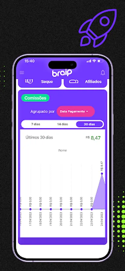 Track your account and receive notifications about the progress of your transactions and sales. With Braip it's easy, fast, convenient and safe! Download the app and enjoy the news!