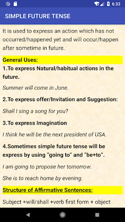 Welcome to the English tenses android application.This application consists rules of English Tenses with practice exercises.