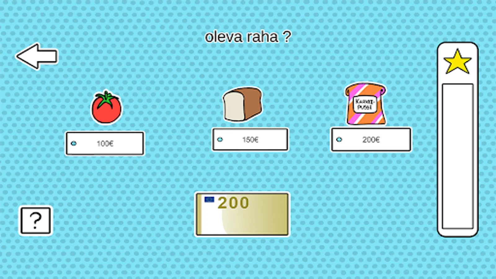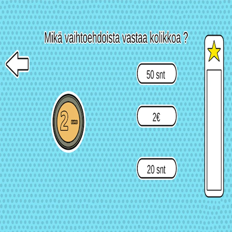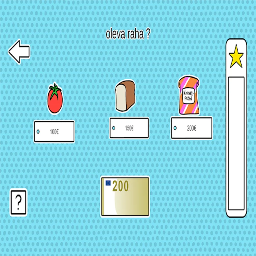 Rahan käyttö-osiossa opetellaan rahankäyttöä sekä kolikoiden ja seteleiden tunnistamista.