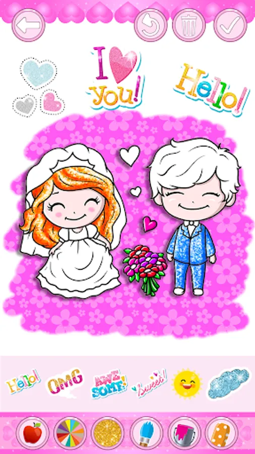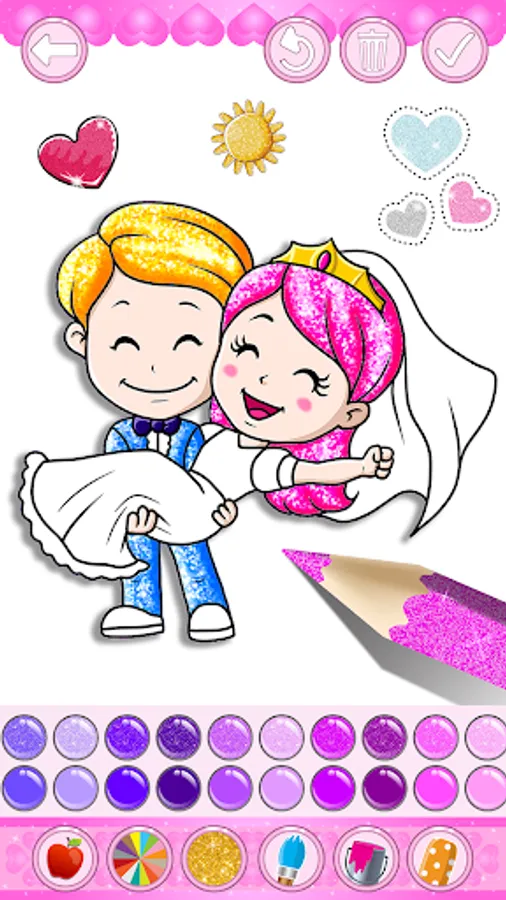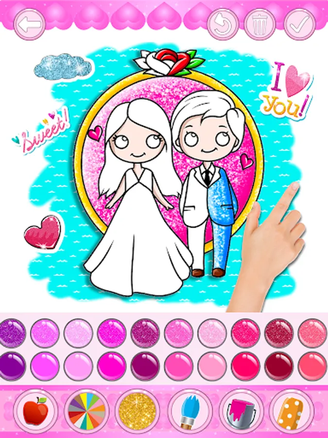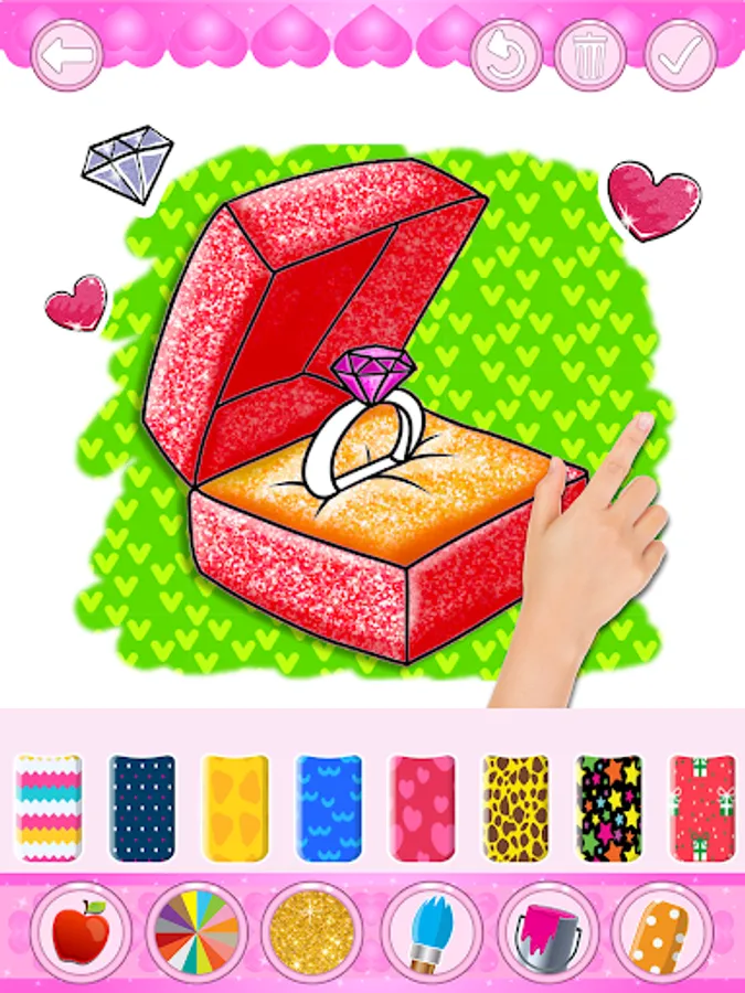 Beautifully designed Coloring game packed with more than 40 beautiful pages of Glitter Coloring Pages.